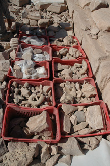 of pottery, 12 boxes of stucco, 2 boxes of bones, one crate of soil samples,