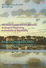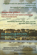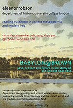 BABYLON@BROWN is a lecture series sponsored by Egyptology and Ancient Western Asian Studies and the Joukowsky Institute for Archaeology and the Ancient World, with additional support from a Graduate International Colloquia grant.