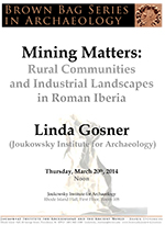 Linda Gosner, a doctoral candidate in Archaeology and the Ancient World at the Joukowsky Institute, will discuss her current research. Pizza and soda will be provided, or feel free to bring a lunch.