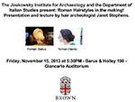 Come visit the Joukowsky Institute for Archaeology and the Ancient World in Rhode Island Hall. Faculty and students will be on hand to tour you through the building, as well as to show you artifacts and images, both from some of our current fieldwork (in the Caribbean, Egypt, Italy, Jordan, Turkey, and Rhode Island) and from the Institute's collections.