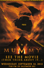 A free screening of the movie The Mummy, on a giant screen, with surround sound! Followed by commentaries by Brown professors, examining the themes and historical basis of the movie.