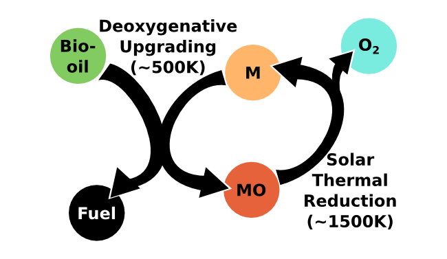 In the last few decades, technologies for converting solar, wind and geothermal power into grid-based electricity have improved by leaps and bounds. At the same time, however, methods for renewably generating gasoline- and diesel-like fuels have lagged behind. In an article published this month, we introduce the concept of looped-oxide catalysis (LOC), a two-step cycle which harnesses solar thermal energy to indirectly drive biomass deoxygenation. [More...]